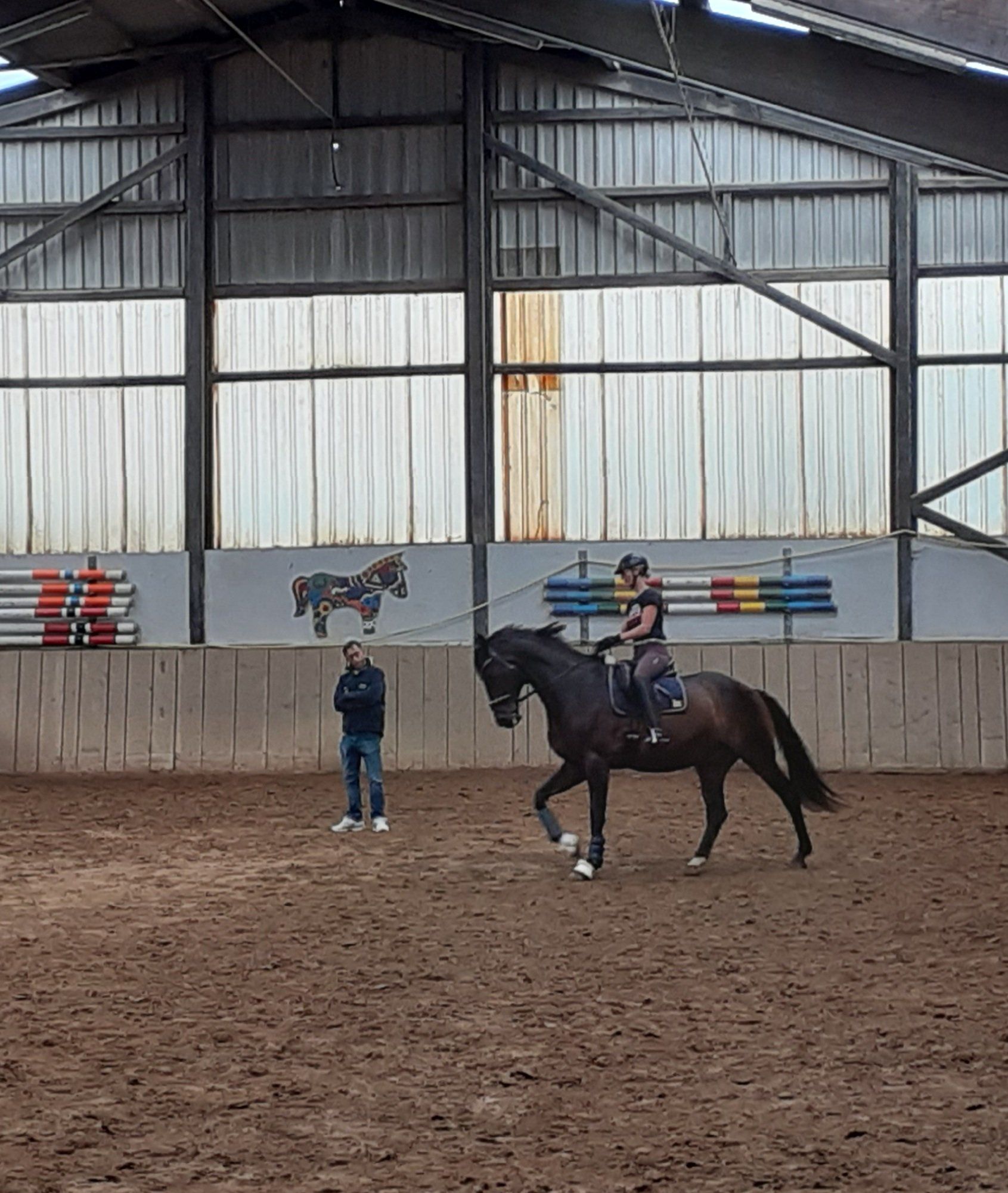 Durch den besonderen Boden aus Holz-Sticks kann unser neuer Reitplatz das ganze Jahr über beritten werden; es staubt nicht und er friert nicht ein. Eine ideale Ausweichfläche gerade jetzt auch im zweiten Lockdown.