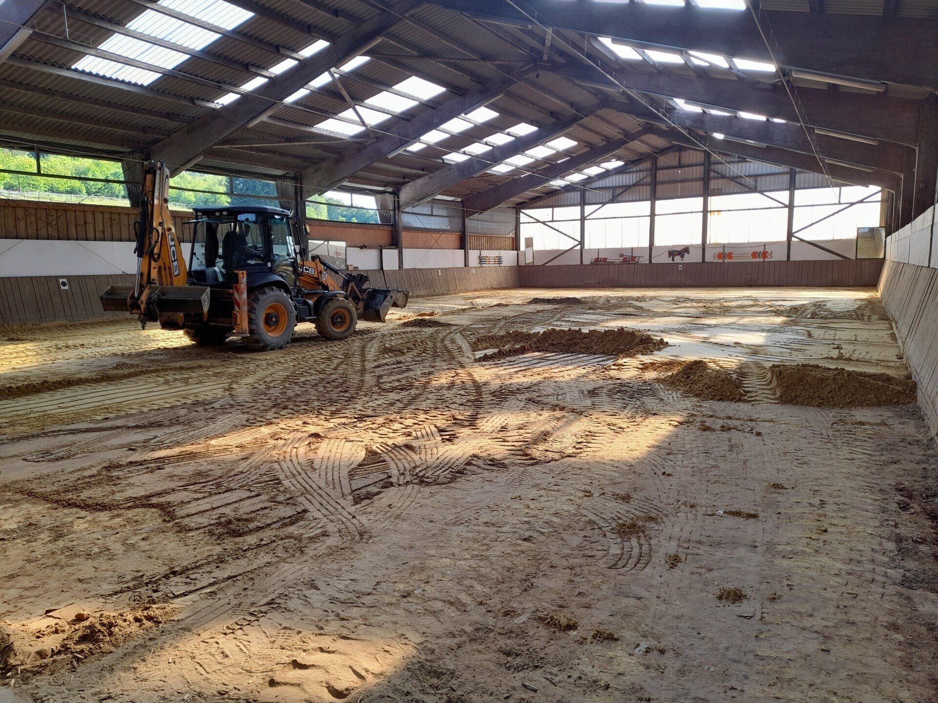 In der 22. Kalenderwoche wurde mit großem Gerät der gesamte Hallenboden ausgetauscht. Der Untergrund ist komplett überarbeitet und der neue Sand fachmännisch verteilt worden. Wir haben uns für den Stresand A entschieden, der nun auch ohne Zusätze für die besten Bedingungen zu unserem Turnier im August sorgt. Wir danken allen fleißigen Helfern und Organisatoren der großen Baumaßnahme.