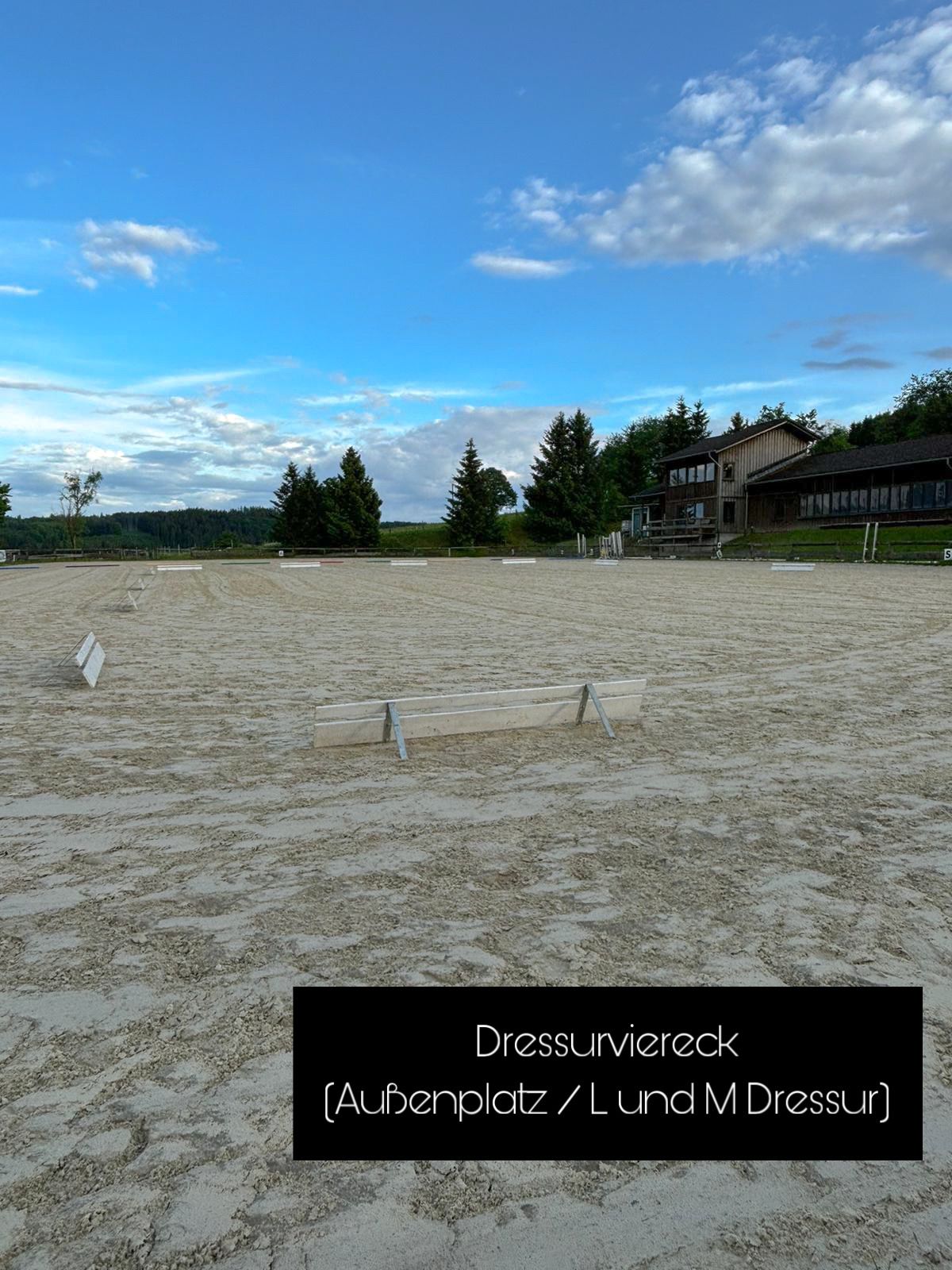 In der Halle finden die E und A Dressuren statt. Hierzu wird auf dem unteren Abreiteplatz abgeritten.