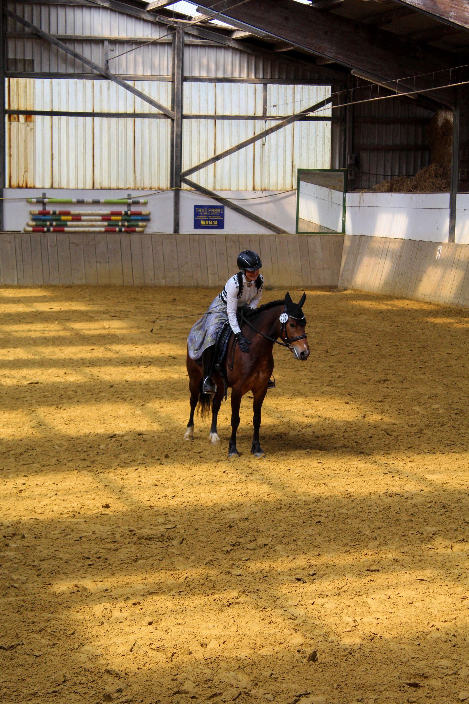 In der Halle finden die E und A Dressuren statt. Hierzu wird auf dem unteren Abreiteplatz abgeritten.