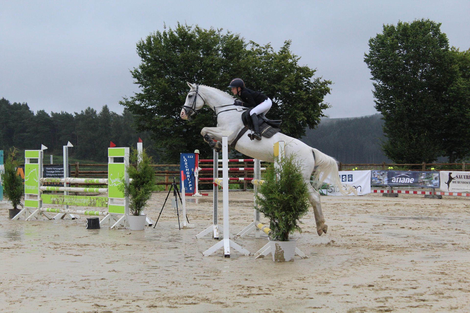 Unter den strengen Corona- und Herpesvorschriften kämpften sich die Reiter*innen bei echtem sauerländer Aprilwetter durch die Parcours und Springaufgaben.